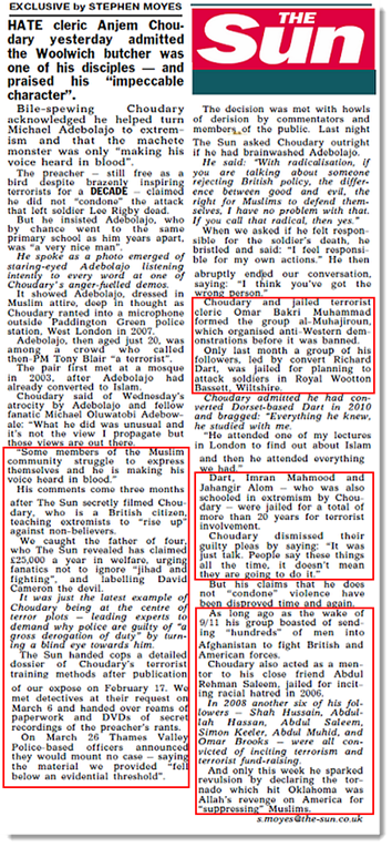 Η Sun αναφέρει ότι χάρη της προστασίας του λόγου πολλοί μουσουλμάνοι κληρικοί (κάτι σαν τους πάστορες…) όπως ο Anjem Choudary, o Abu Qatada και ο Abu Hamza μπορούν να φανατίζουν τους μουσουλμάνους με προκλητικούς λόγους και να τους οδηγούν σε παράνομες πράξεις βίας.